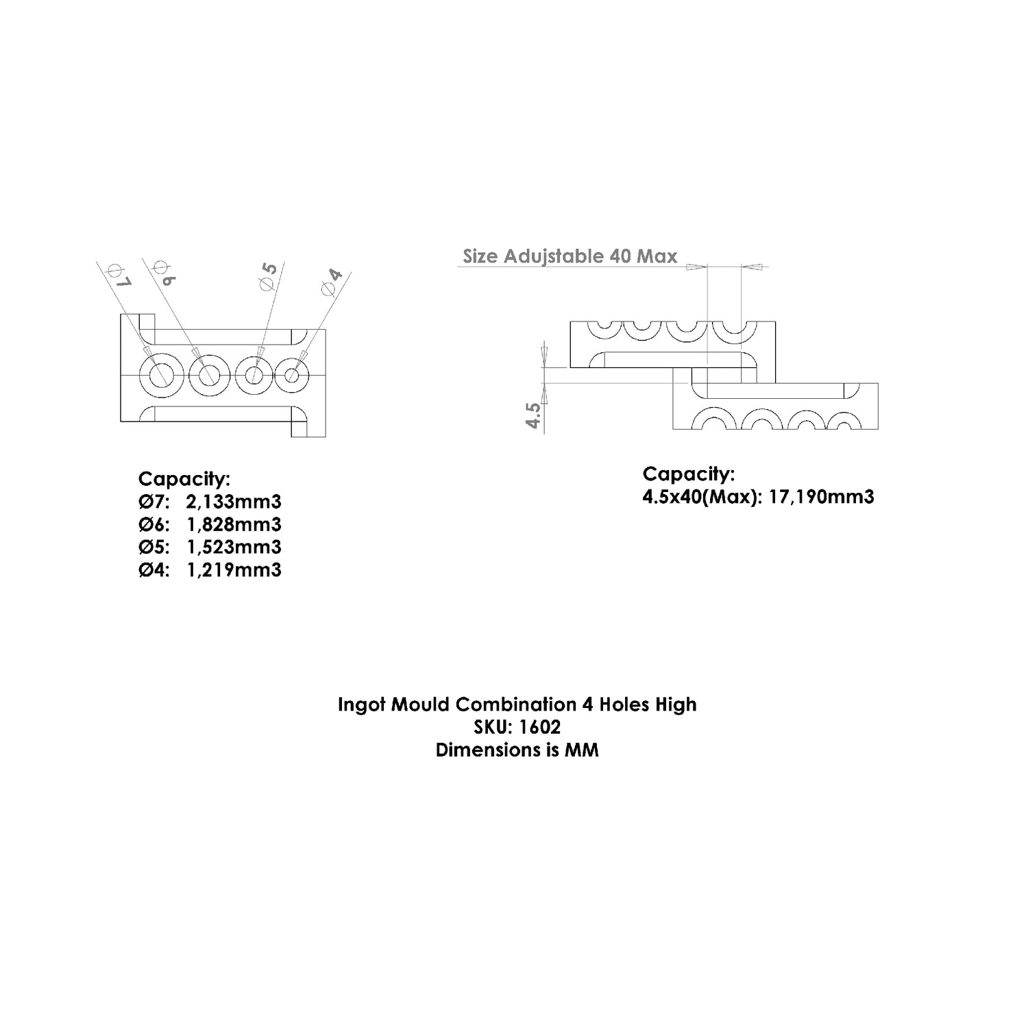 - 4.5 × 40mm (Max): 17,190 mm³